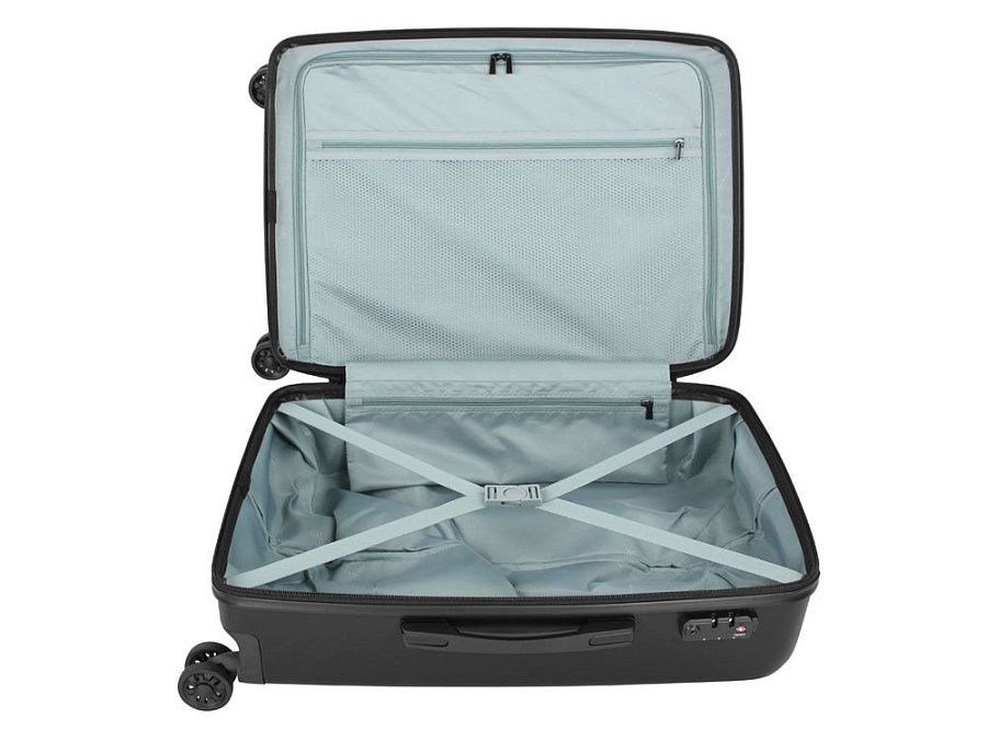 Внешняя организация: телескопическая ручка, кодовый замок TSA, 4 двойных колеса, боковая ручка, ручка на дне