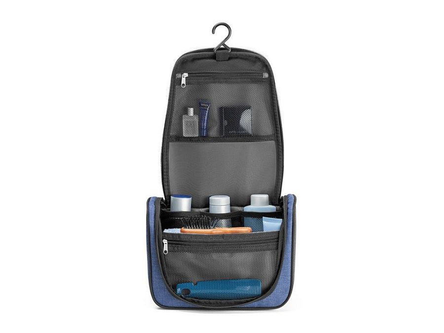 Несессер 600D высокой плотности. Основное отделение имеет двойную молнию и внутреннюю подкладку из 210D. Имеет несколько внутренних карманов и крючок сверху для подвешивания. 250 x 180 x 105 мм