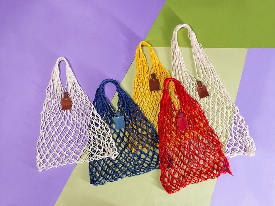 Авоськи окрашиваются профессиональными красками для пряжи и не линяют.