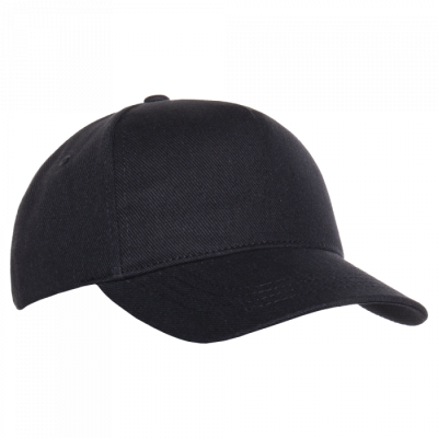 Бейсболка-пятиклинка без лобового шва с изогнутым жестким козырьком и регулируемой металлической застежкой.