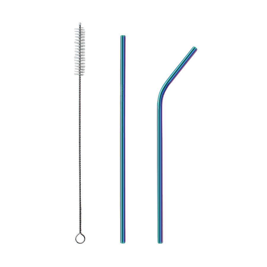 Трубочки изготовлены из пищевой стали. В набор входит: прямая и изогнутая трубочки, а также ершик для удобной чистки.