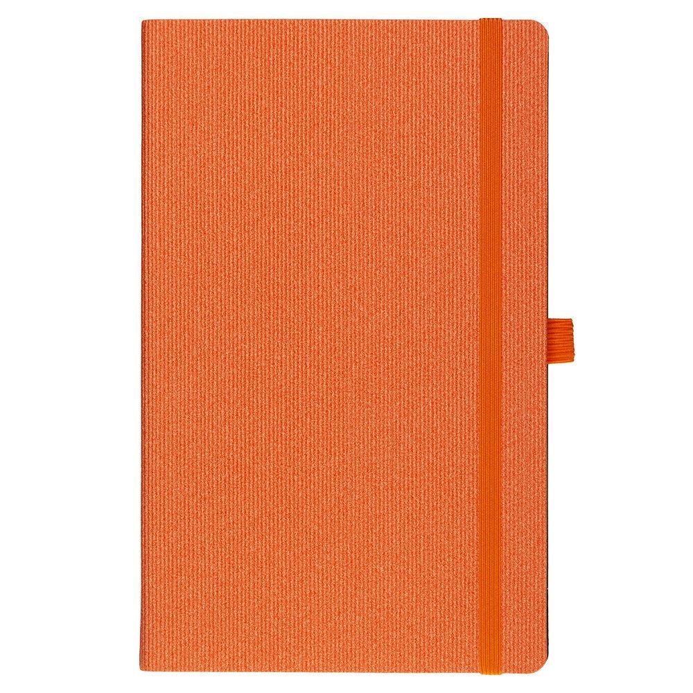Блокнот формата 13х21 см 192 страниц, кремовая бумага 80 г сертифицирована FSC Печать в 1+1 цвет, все страницы пронумерованы Шитый блок Форцазы из черной дизайнерской бумаги 140 гр FSC Гибкая обложка из высококачественного кожзама от ведущего итальянского производителя Резинка 8 мм в тон обложки Петля для ручки в цвет обложки Ляссе
