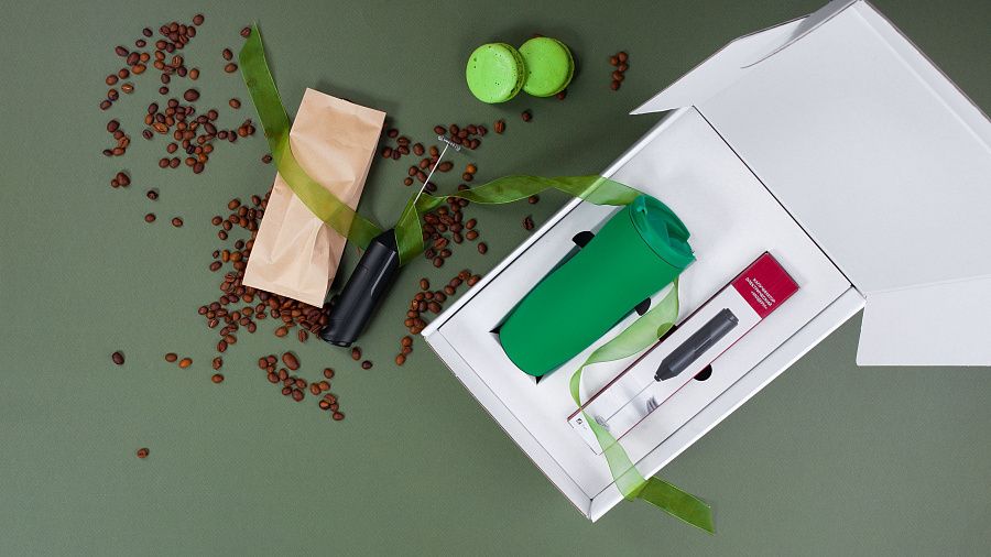 Набор, который станет приятным подарком для всех любителей кофе: зерновой кофе, термостакан и капучинатор для молока, чтобы ваш напиток получился с пенкой!