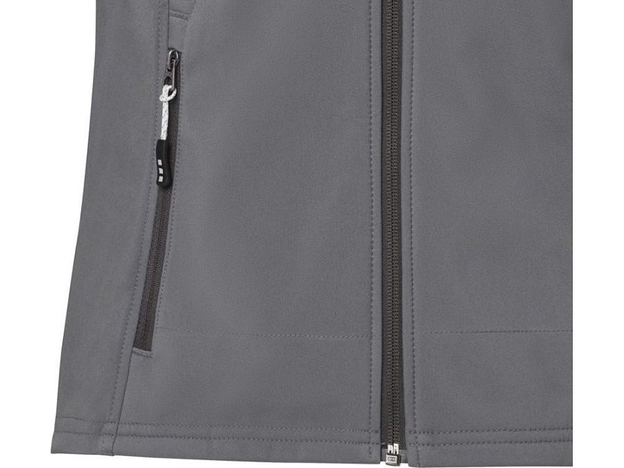 Женская куртка софтшел Langley. Стандартный покрой. Отстегивающийся капюшон на шнурках со стопперами. Обратная молния по центру и на карманах для рук. Регулируемые манжеты на липучках. Отражающий лого сзади. Водонепроницаемый 5000 мм. Дышащий 3000 мм. Ткань эластична в четырех направлениях. Ветронепроницаемая. Ремешки на собачку (второй комплект в цвете антрацит). Ткань из 90% полиэстера и 10% эластана, склеенного со 100% полиэстеровым микрофлисом. 300 г/м².
