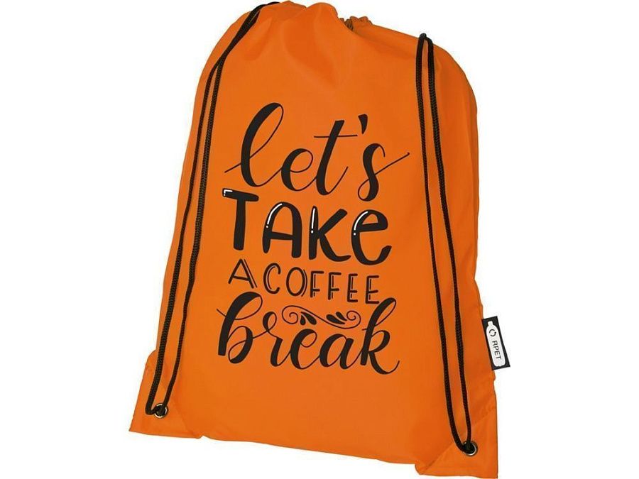 Рюкзак со шнурком Oriole из переработанного ПЭТ. Прочный рюкзак, изготовленный на 100 % из переработанного пластика, предназначенного для повторного использования, что способствует уменьшению количества пластиковых отходов. Большое основное отделение затягивается на шнурок черного цвета. Вместимость: 9 литров, прочность до 5 кг. Переработанный ПЭТ 190Т.