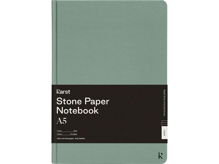 Блокнот в твердом переплете Karst® формата A5 является хитом продаж и любимцем публики. Гладкая поверхность страниц и плоский переплет обеспечивают достаточно удобства и пространства для записи ваших заметок и идей. Имеет эластичный ремешок, позволяющий держать блокнот закрытым, 144 водонепроницаемые и стойкие к разрыву страницы с линовкой, расширяемый задний карман для хранения и закладку с запаянным кончиком и закругленными углами.