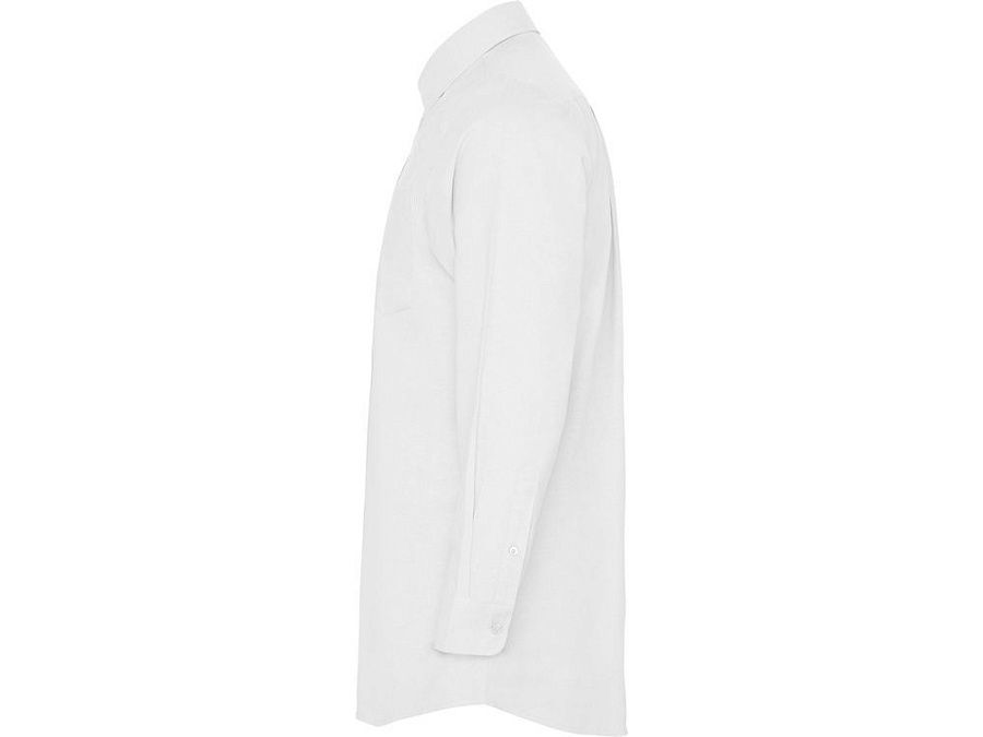 Мужская рубашка с длинным рукавом, накладной карман слева. Планка на пуговицах. Отложной воротник на стойке. Манжета регулируется по ширине с помощью 2-х пуговиц. Кокетка на спинке.