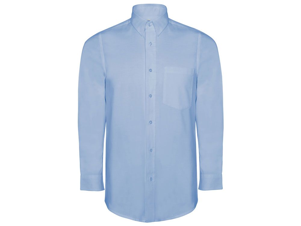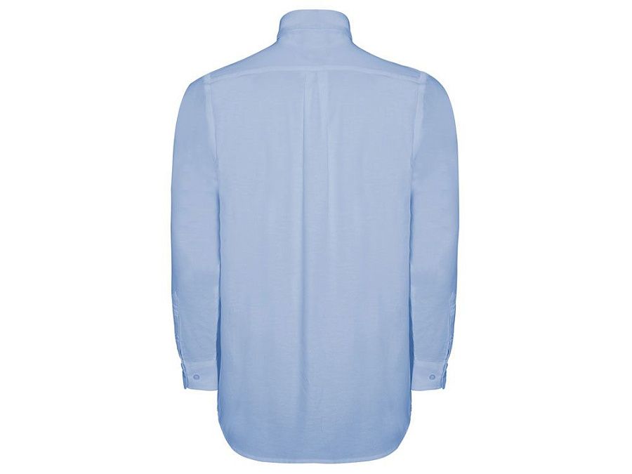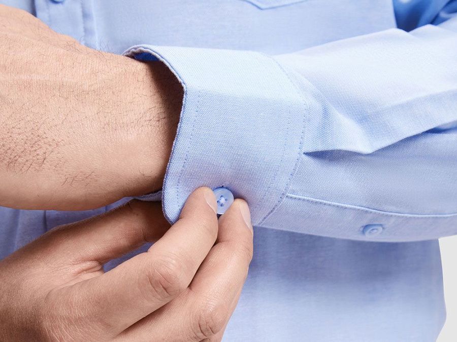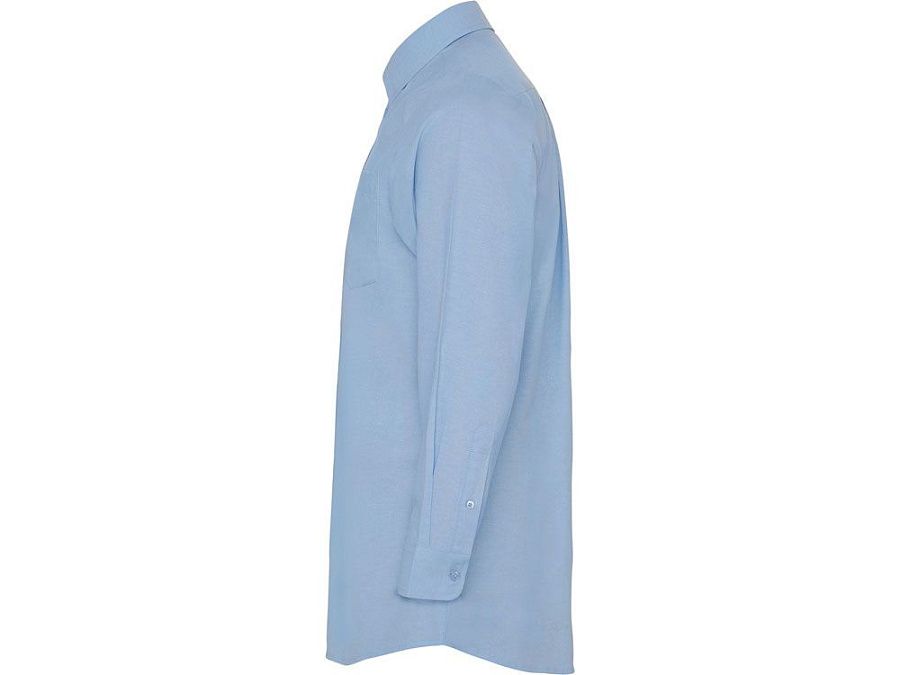 Мужская рубашка с длинным рукавом, накладной карман слева. Планка на пуговицах. Отложной воротник на стойке. Манжета регулируется по ширине с помощью 2-х пуговиц. Кокетка на спинке.