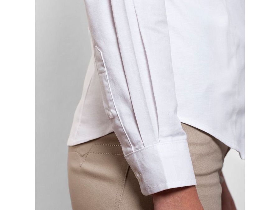 Женская рубашка с длинным рукавом, накладной карман слева. Планка на пуговицах. Отложной воротник на стойке, могут встречаться изделия, где воротник продублирован пуговицами. Манжета регулируется по ширине с помощью 2-х пуговиц. Кокетка на спинке.