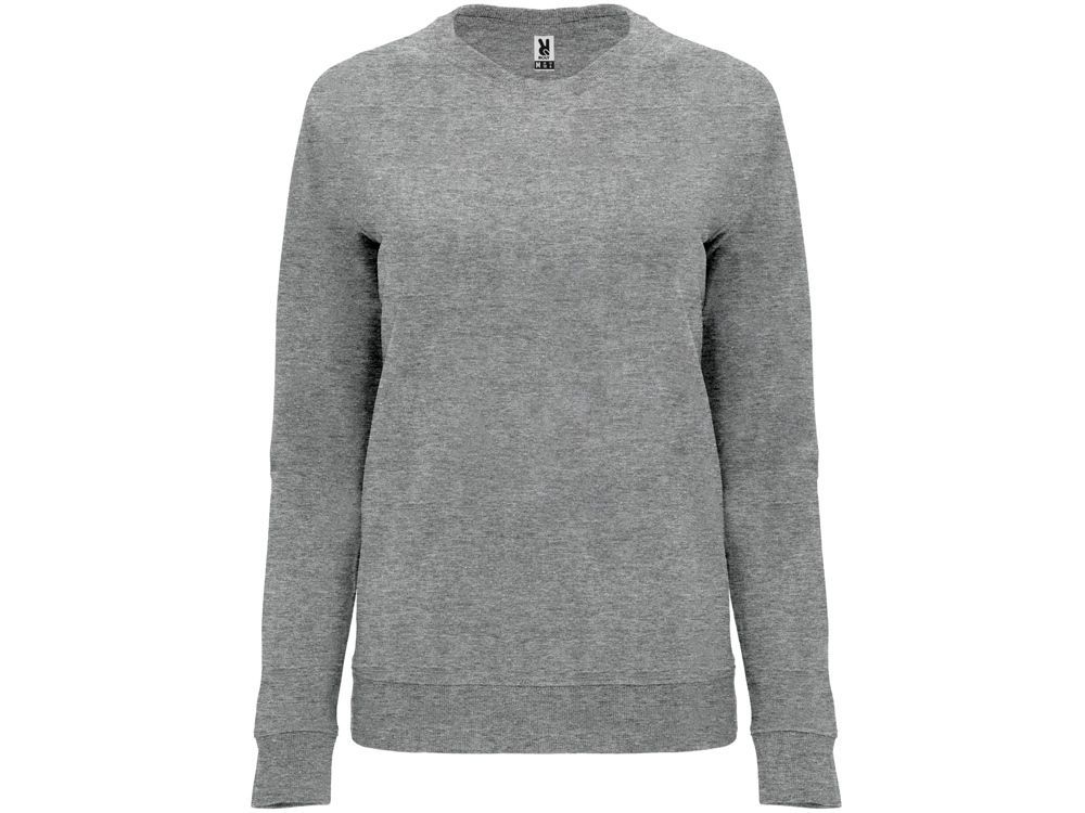 Свитшот с рукавом реглан из хлопкового футера без начеса. Манжеты по рукавами низу изделия из риба 2х1. Впереди треугольная деталь с декоративной отстрочкой .Круглый вырез горловины дополнительно усилен тесьмой.