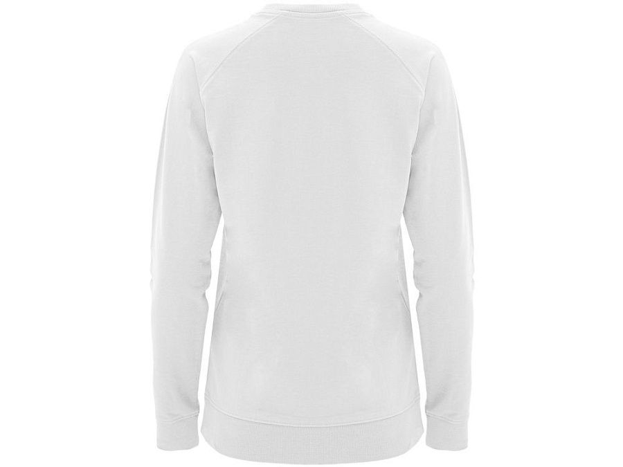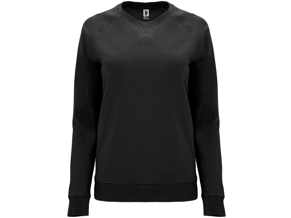 Свитшот с рукавом реглан из хлопкового футера без начеса. Манжеты по рукавами низу изделия из риба 2х1. Впереди треугольная деталь с декоративной отстрочкой .Круглый вырез горловины дополнительно усилен тесьмой.