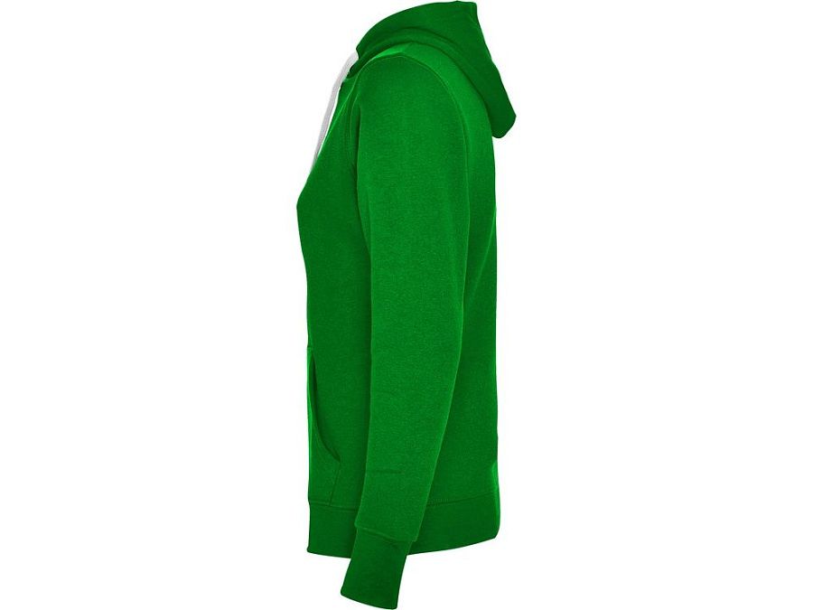 Худи с капюшоном и шнурками. Отделка горловины спинки внутри тесьмой, Риб 1х1 по низу изделия и манжетам. Карман кенгуру. На манжетах вырез под большой палец