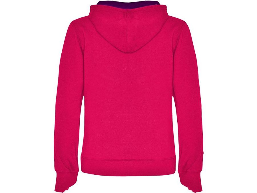 Худи с капюшоном и шнурками. Отделка горловины спинки внутри тесьмой, Риб 1х1 по низу изделия и манжетам. Карман кенгуру. На манжетах вырез под большой палец