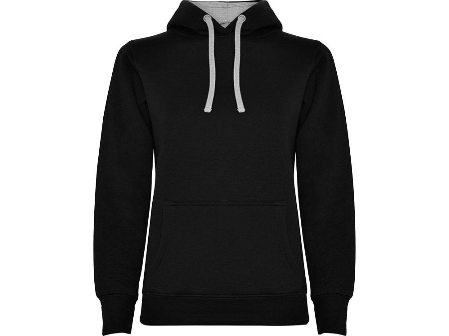 Худи с капюшоном и шнурками. Отделка горловины спинки внутри тесьмой, Риб 1х1 по низу изделия и манжетам. Карман кенгуру. На манжетах вырез под большой палец