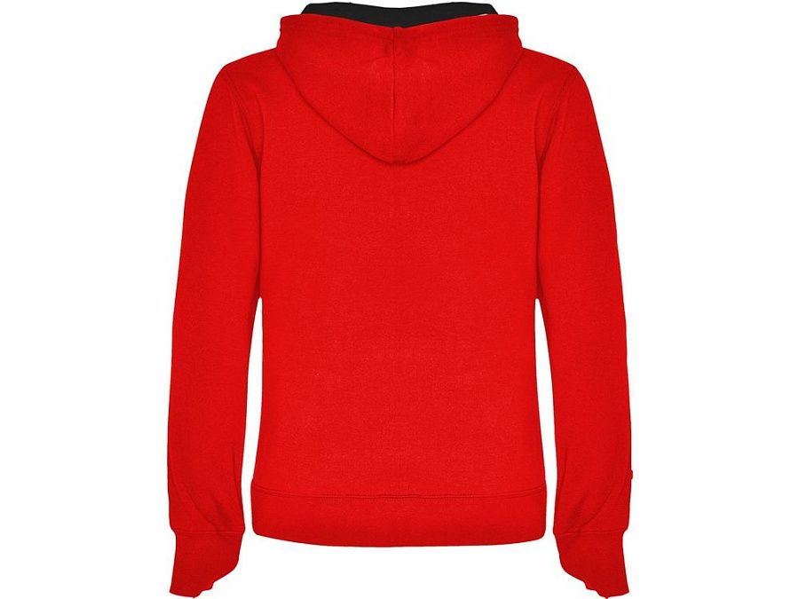 Худи с капюшоном и шнурками. Отделка горловины спинки внутри тесьмой, Риб 1х1 по низу изделия и манжетам. Карман кенгуру. На манжетах вырез под большой палец