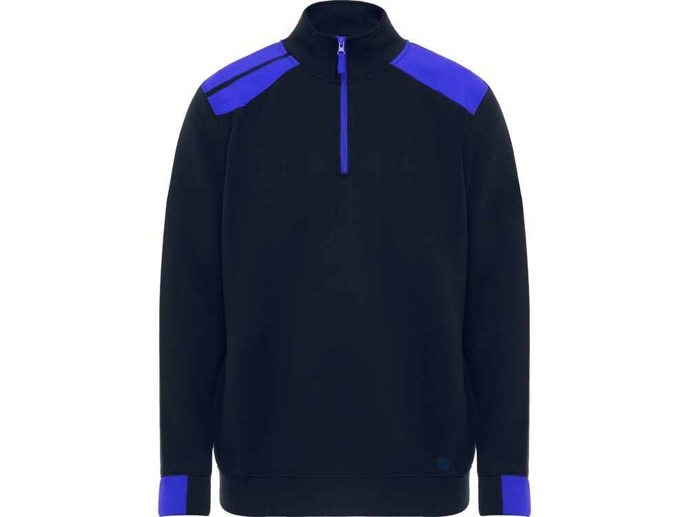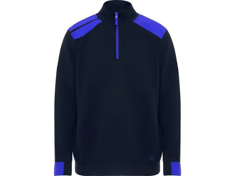 Толстовка с воротом- стойкой на молнии с сочетанием двух цветом. Половина манжет и низ изделия из рибового полотна 1х1. Укрепляющая отстрочка по внутреннему воротнику. Контрастные плечи , детали, молния и манжеты