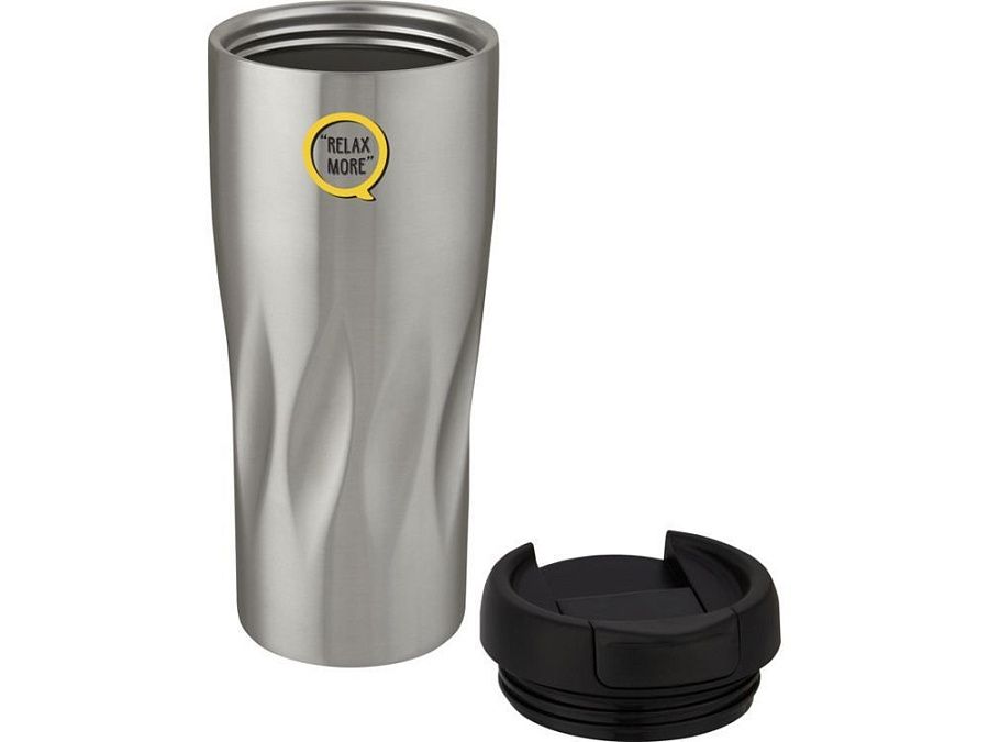 Медный термостакан с двойными стенками, вакуумной изоляцией и навинчивающейся герметичной крышкой с волнистым геометрическим дизайном. Благодаря изоляции и нержавеющей стали 18/8 напитки несколько часов остаются горячими или холодными. Без содержания BPA, протестировано и одобрено согласно немецкому законодательству о безопасности пищевых продуктов (LFGB), проверено на содержание фталатов согласно нормам REACH. Объем 450 мл. Рекомендуется мыть вручную. В коробке из переработанного картона.