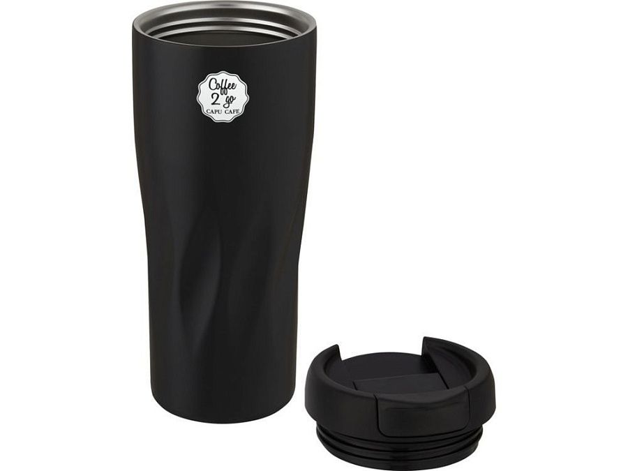 Медный термостакан с двойными стенками, вакуумной изоляцией и навинчивающейся герметичной крышкой с волнистым геометрическим дизайном. Благодаря изоляции и нержавеющей стали 18/8 напитки несколько часов остаются горячими или холодными. Без содержания BPA, протестировано и одобрено согласно немецкому законодательству о безопасности пищевых продуктов (LFGB), проверено на содержание фталатов согласно нормам REACH. Объем 450 мл. Рекомендуется мыть вручную. В коробке из переработанного картона.
