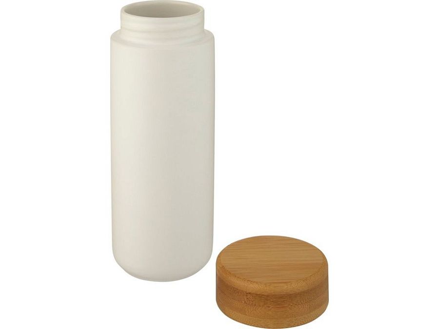 Керамическая кружка со стильной бамбуковой крышкой. Керамическая конструкция с двойными стенками помогает предотвратить образование конденсата на внешней стороне кружки. Навинчивающаяся крышка с защитой от проливания изготовлена из экологичного бамбука, отвечающего принципам экологической и социальной ответственности. Не содержит БФА, испытано и одобрено в соответствии с немецким законодательством о безопасности пищевых продуктов (LFGB). Проверена на содержание фталатов и одобрена для использования в соответствии с правилами REACH. Объем 300 мл. Рекомендуется мыть вручную. В подарочной коробке из переработанного картона.