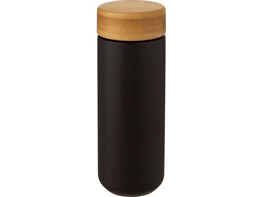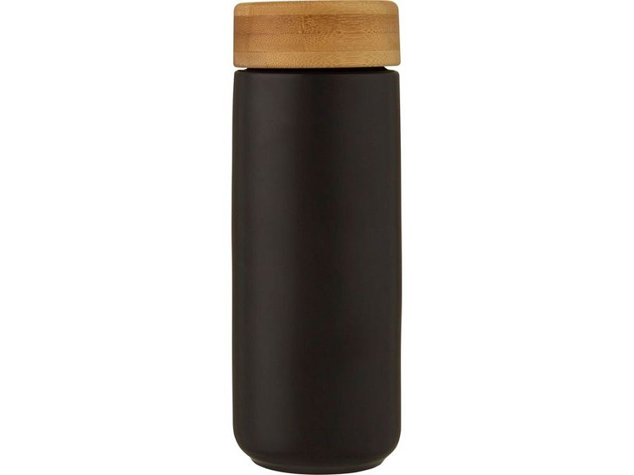 Керамическая кружка со стильной бамбуковой крышкой. Керамическая конструкция с двойными стенками помогает предотвратить образование конденсата на внешней стороне кружки. Навинчивающаяся крышка с защитой от проливания изготовлена из экологичного бамбука, отвечающего принципам экологической и социальной ответственности. Не содержит БФА, испытано и одобрено в соответствии с немецким законодательством о безопасности пищевых продуктов (LFGB). Проверена на содержание фталатов и одобрена для использования в соответствии с правилами REACH. Объем 300 мл. Рекомендуется мыть вручную. В подарочной коробке из переработанного картона.