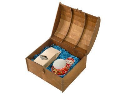 Набор поставляется в большой деревянной коробке в виде сундука с замочком.