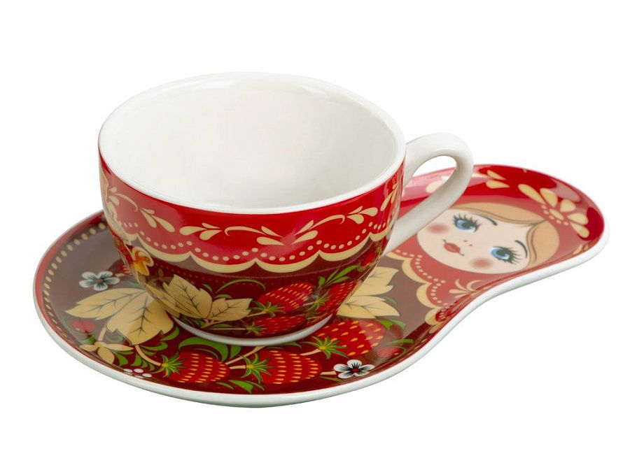 В наборе вы найдете необычную чайно-кофейную пару с подставкой в виде русской «Матрешки», которая является одним из главных символов России и чай "Малина с мятой" травяной, 70 г.
