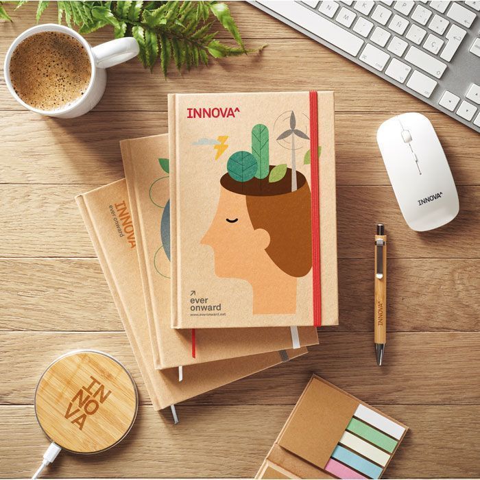 Блокнот A5 в твердой обложке из переработанного картона. В переплете. 200 линованных страниц из переработанной бумаги (100 листов/80 гсм). Эластичный хлястик и ленточка-закладка для страниц. Сделано в ЕС.