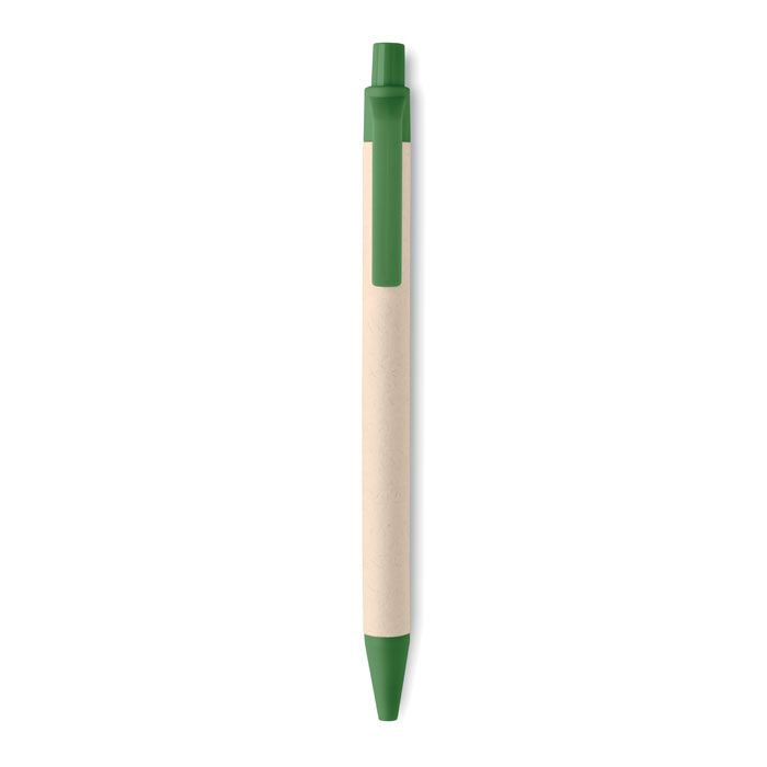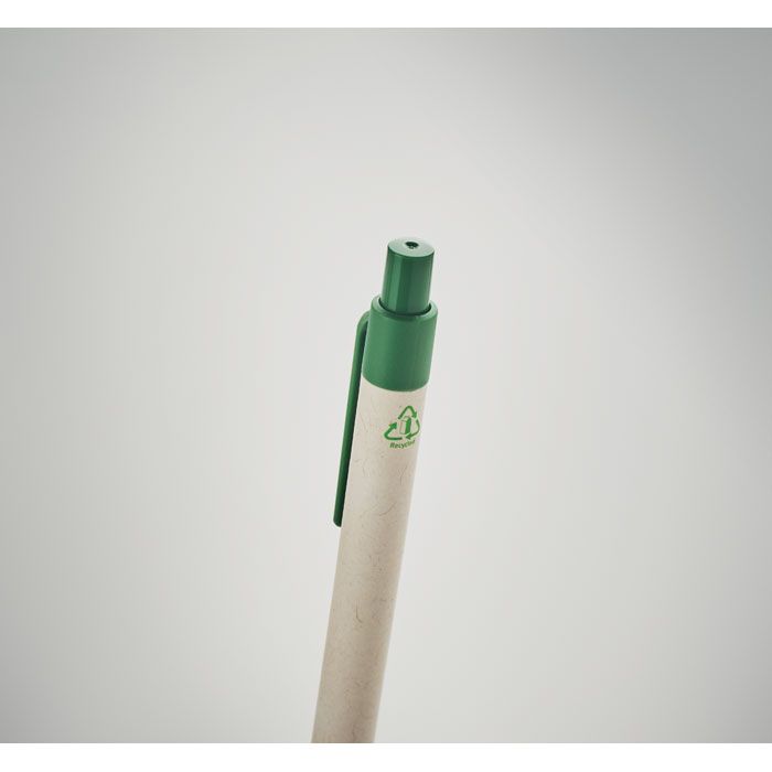 Кнопочная шариковая ручка с корпусом из переработанного картона и деталями из 100% биоразлагаемого материала на основе кукурузы. Синие чернила.
