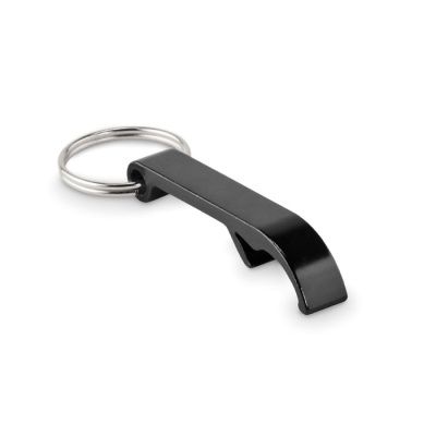 Открывалка для бутылок и брелок для ключей из переработанного алюминия с блестящей отделкой.