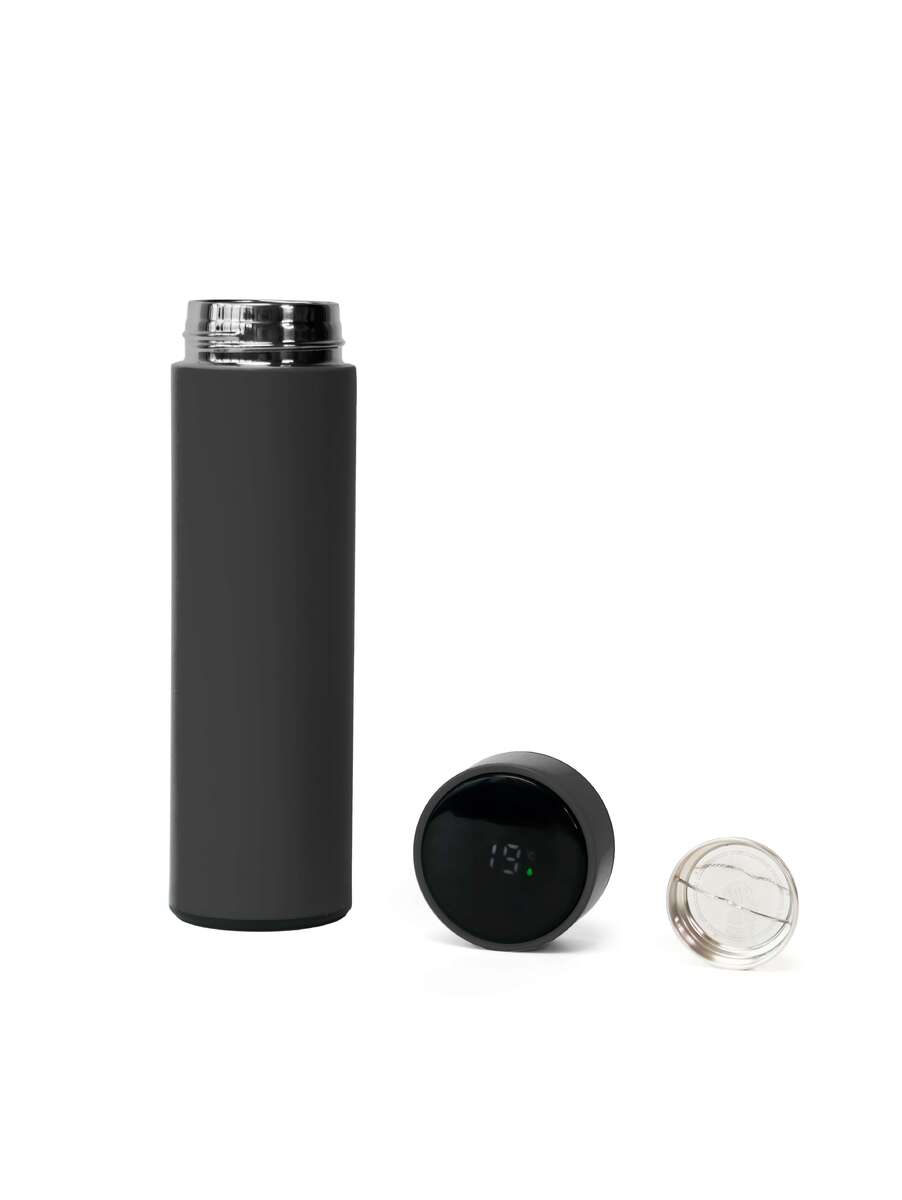 Термос из нержавеющей стали, покрытый цветным soft touch, с крышкой, в которой встроен термометр и LED дисплей, показывающий температуру внутри термоса. Объем: 500 мл. Упаковка: каждый термос в крафт коробке.