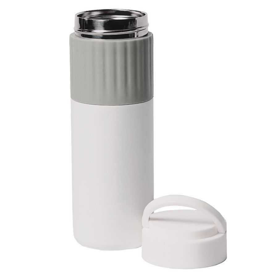 Термос TURBO с двойными стальными стенкамиСтильный белый матовый корпус термоса с цветной силиконовой манжетойДержатель на крышке для удобства переноскиГерметичная навинчивающаяся крышка не даст напитку пролитьсяСохраняет температуру жидкости до 8 часов в зависимости от температуры окружающей среды.Цвет близкий к Pantone cool grey 8CИндивидуальная упаковка из крафтового картона