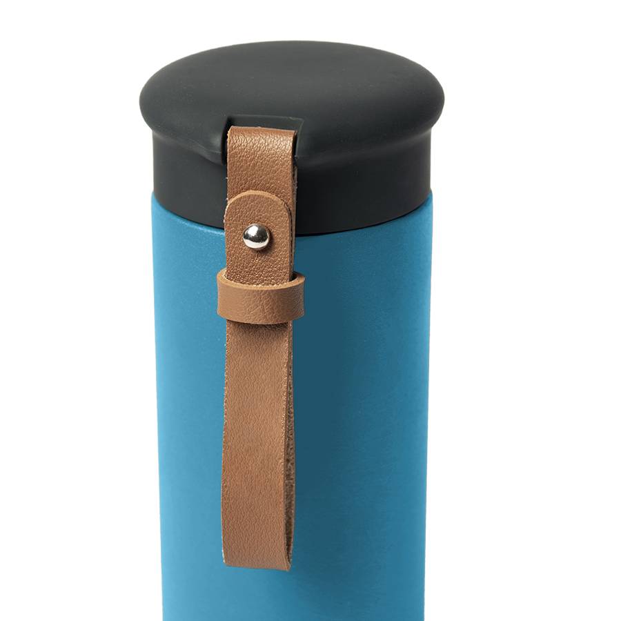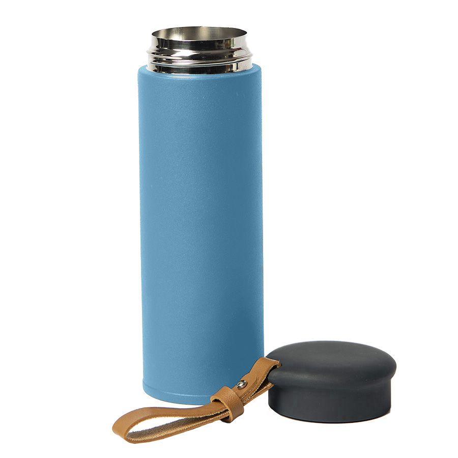 Вакуумный термос STRIPE с двойными стальными стенкамиСтильный матовый корпус термоса из нержавеющей стали (марка 304)Удобный ремешок из искусственной кожи, подходит для персонализацииГерметичная крышка с покрытием soft-touch не даст напитку пролитьсяСохраняет температуру жидкости до 12 часов в зависимости от температуры окружающей среды.Цвет близкий к Pantone 299CИндивидуальная упаковка из крафтового картона