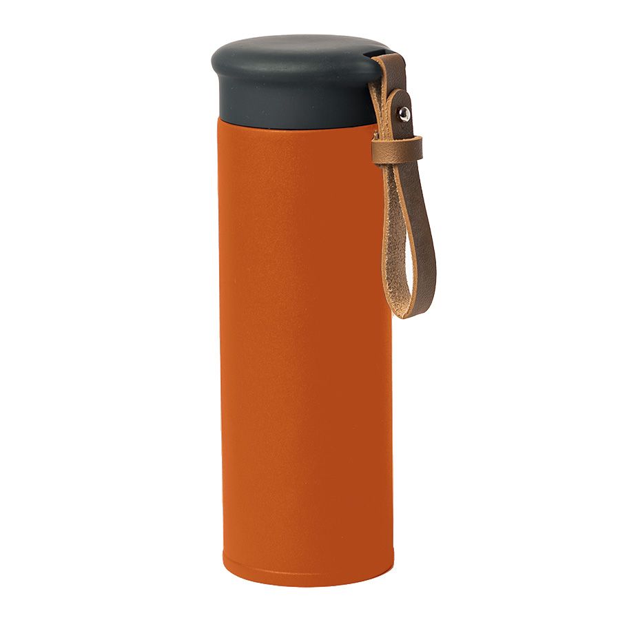 Вакуумный термос STRIPE с двойными стальными стенкамиСтильный матовый корпус термоса из нержавеющей стали (марка 304)Удобный ремешок из искусственной кожи, подходит для персонализацииГерметичная крышка с покрытием soft-touch не даст напитку пролитьсяСохраняет температуру жидкости до 12 часов в зависимости от температуры окружающей среды.Цвет близкий к Pantone 021 CИндивидуальная упаковка из крафтового картона