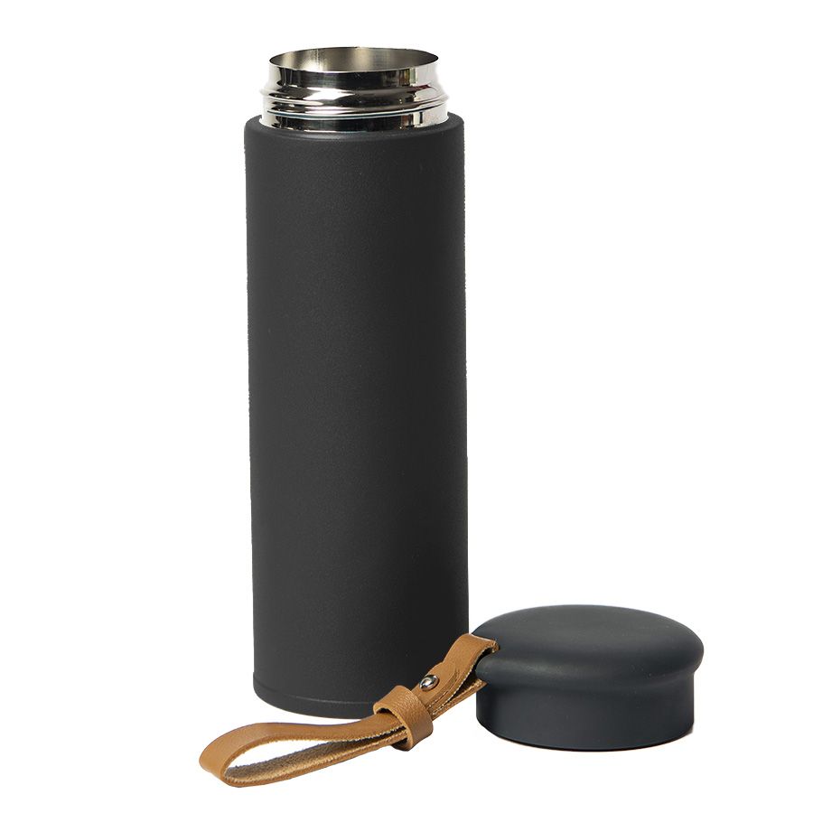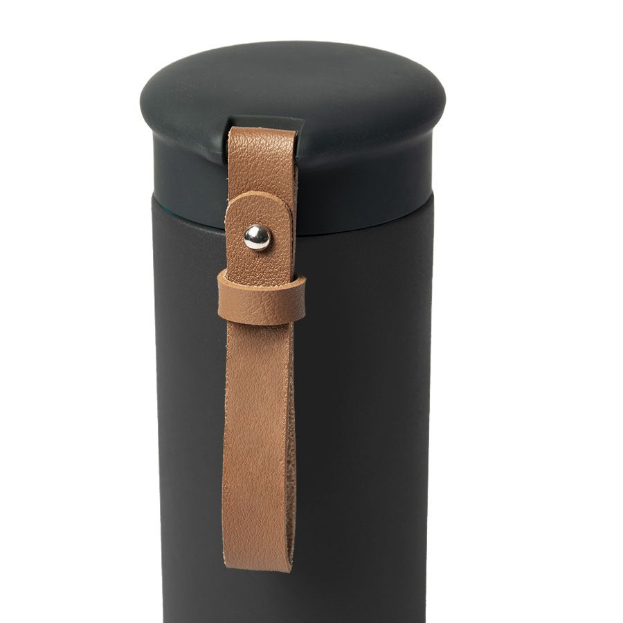 Вакуумный термос STRIPE с двойными стальными стенкамиСтильный матовый корпус термоса из нержавеющей стали (марка 304)Удобный ремешок из искусственной кожи, подходит для персонализацииГерметичная крышка с покрытием soft-touch не даст напитку пролитьсяСохраняет температуру жидкости до 12 часов в зависимости от температуры окружающей среды.Индивидуальная упаковка из крафтового картона