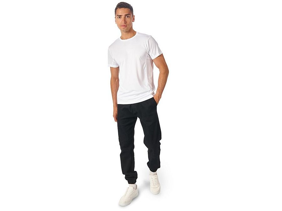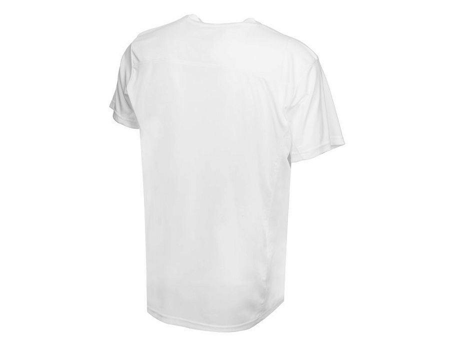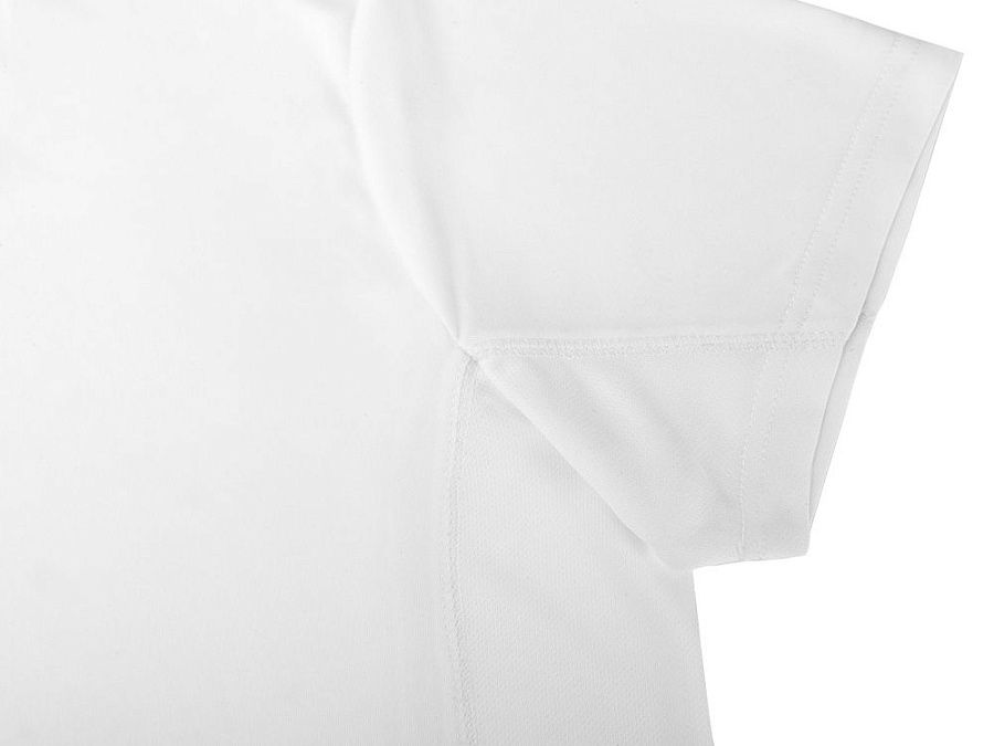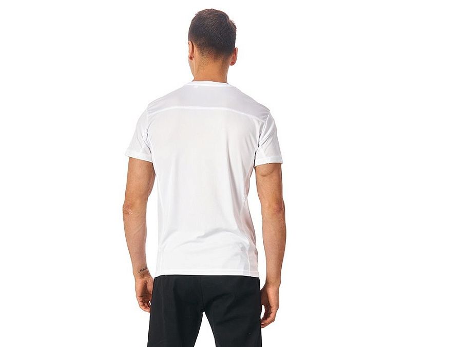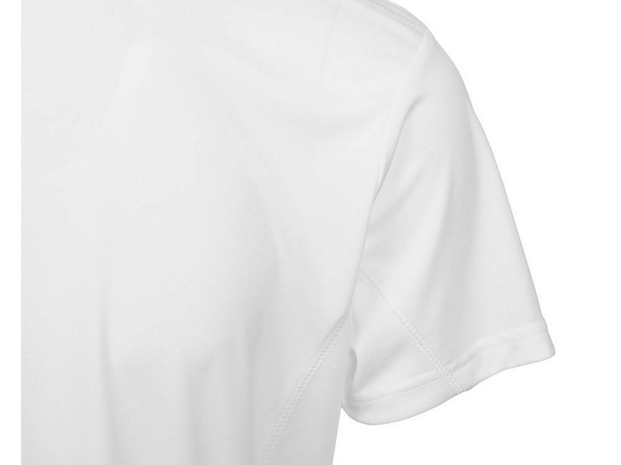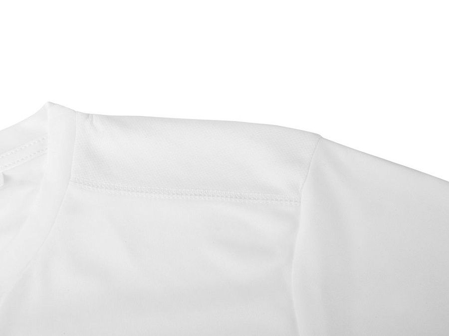 Мужская спортивная футболка выполнена из двух разных видов полотна: спинка и перед из интерлока имеют гладкую поверхность, а декоративные вставки выполнены из спортивной сетки ячеистой структуры. Благодаря наличию таких вставок воздух свободно проникает под футболку, охлаждая кожу во время спортивных нагрузок.