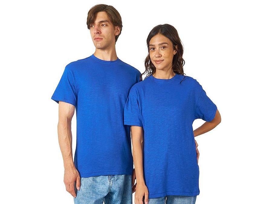 Полотно футболки имеет необычную структуру - с протяжками, но при этом гладкую поверхность, что обеспечивает идеальную поверхность для нанесения: прямая печать, трафаретная или термотрансфер прекрасно ложатся на такое полотно. Декоративная отстрочка по низу рукавов и изделия, а также отстрочка по горловине позволяют футболке дольше сохранять форму.