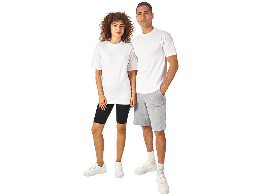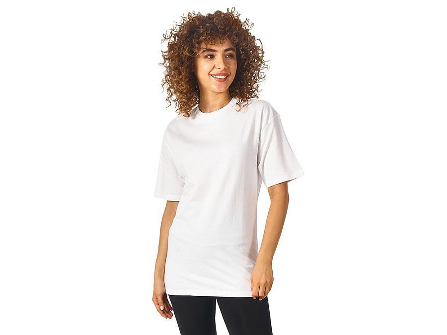 Футболка выполнена из хлопкового френч терри с петельками на изнаночной стороне. Горловина обработана рибом 2х2 и дополнительно усилена тесьмой-елочкой с внутренней стороны спинки. Гладкая поверхность полотна позволяет идеально нанести изображение. Футболка расслабленного силуэта для прогулок и других видов приятного времяпрепровождения
