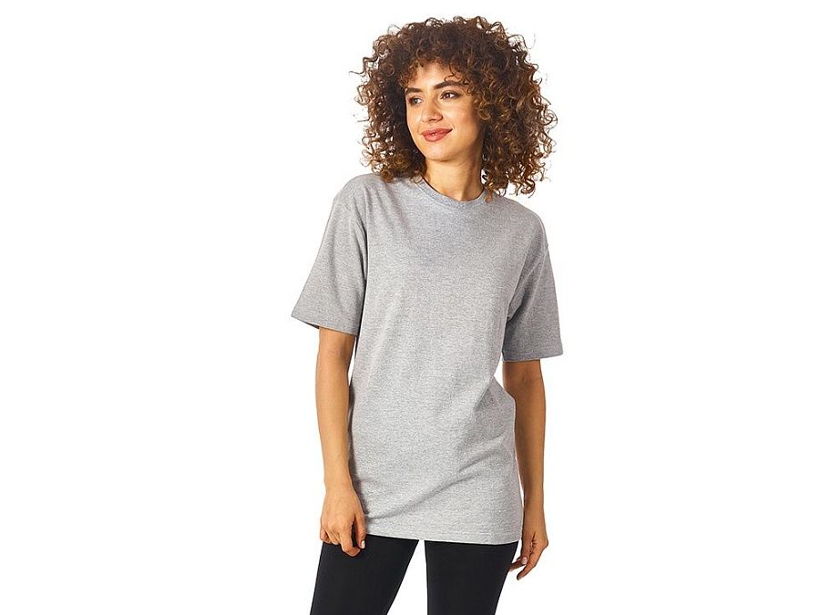 Футболка выполнена из хлопкового френч терри с петельками на изнаночной стороне. Горловина обработана рибом 2х2 и дополнительно усилена тесьмой-елочкой с внутренней стороны спинки. Гладкая поверхность полотна позволяет идеально нанести изображение. Футболка расслабленного силуэта для прогулок и других видов приятного времяпрепровождения