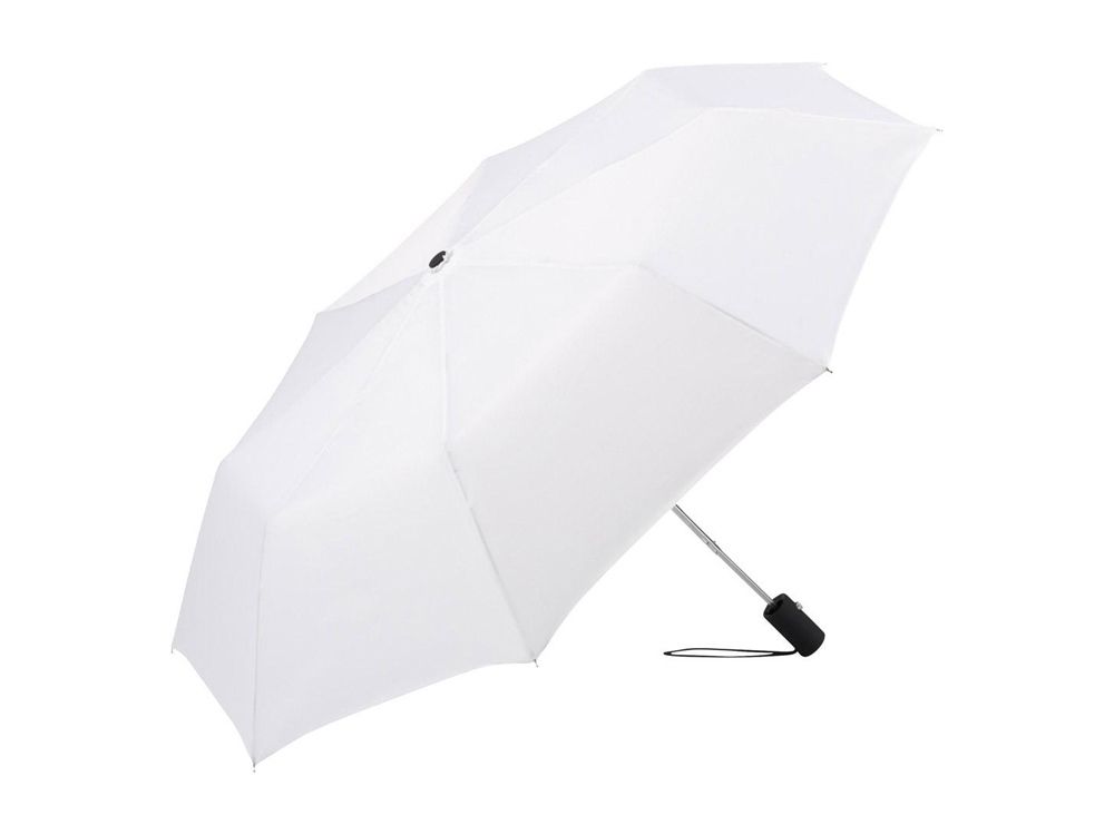 Полуавтоматический складной зонт открывается нажатием кнопки на ручке. Для большего удобства на ручку нанесено покрытие soft touch и добавлен эластичный шнурок.