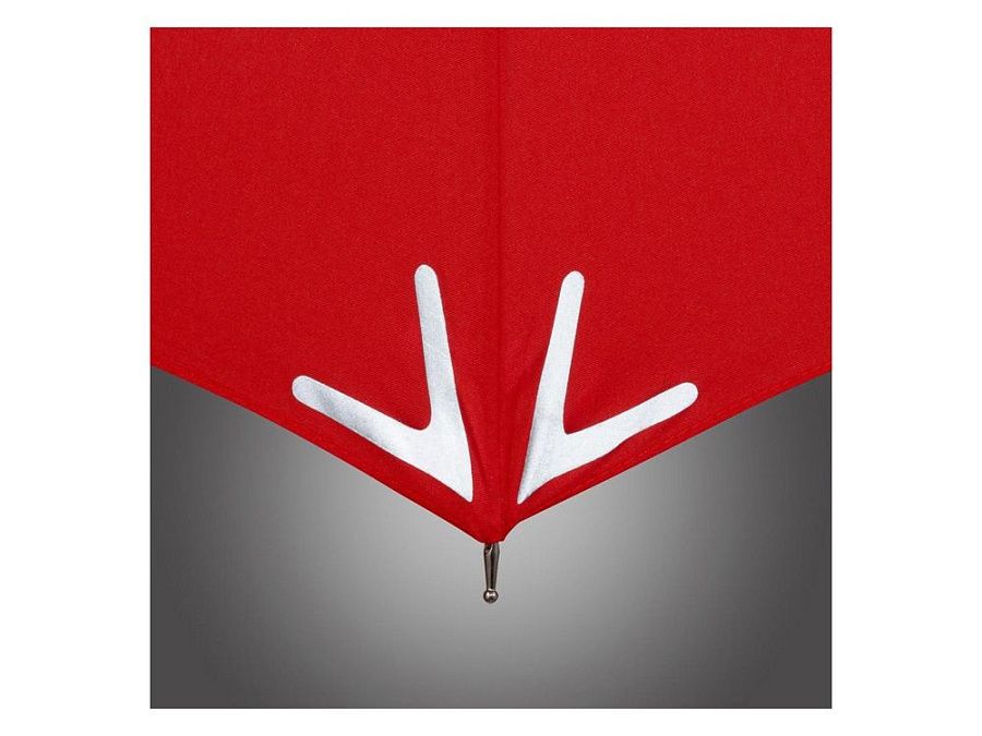 Полуавтоматический зонт-трость со светоотражающими элементами на куполе из запатентованного материала 3M™ Scotchlite™ обеспечит дополнительную защиту в темное время суток. В ручку встроен LED фонарик, который работает в двух режимах - постоянный белый свет и мерцающий красный. Батарейка в комплекте.