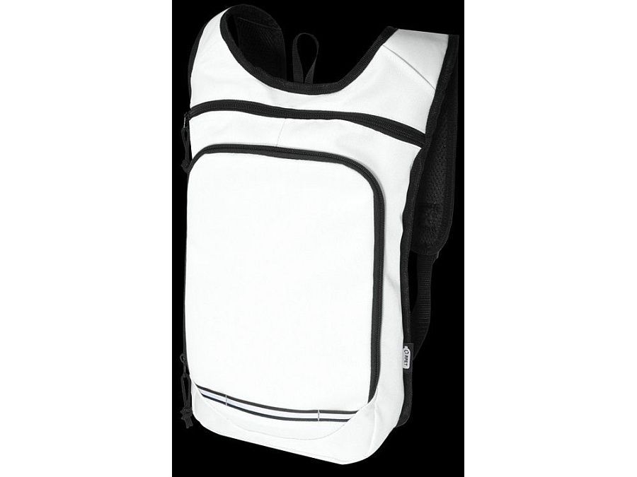 Рюкзак Trails изготовлен из 100% переработанной по стандарту GRS водоотталкивающей ткани и имеет один передний карман на молнии и одно основное отделение на молнии, а также отделение для гидросистемы. Светоотражающие полосы для видимости и сетчатая задняя часть для комфорта при переноске делает его отличным экологичным выбором для активного отдыха.
