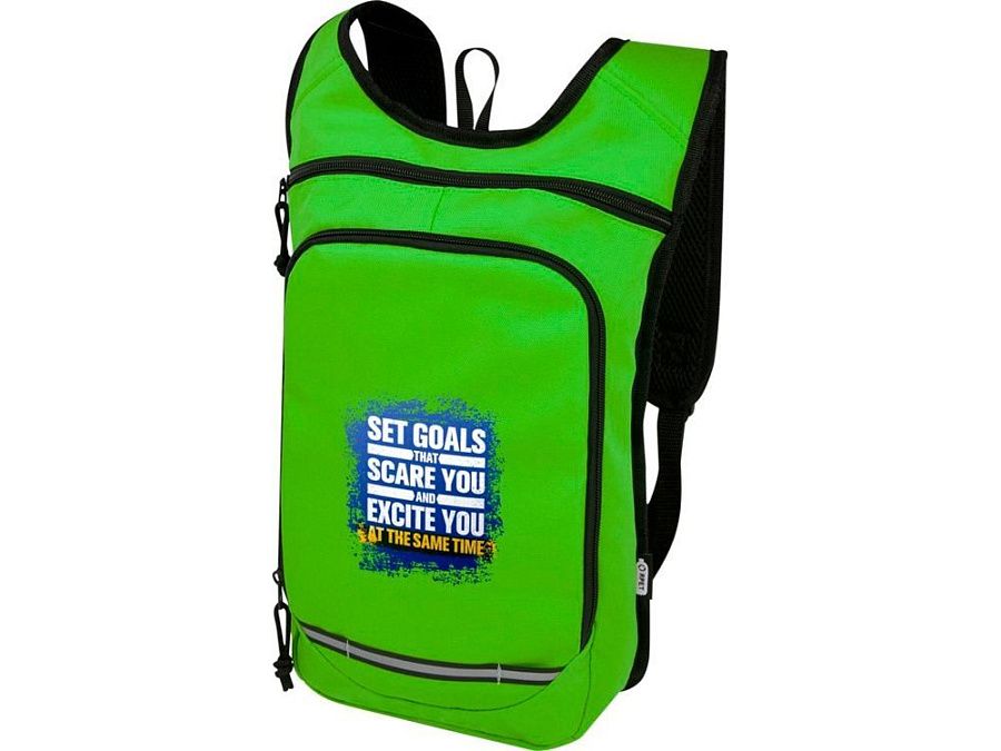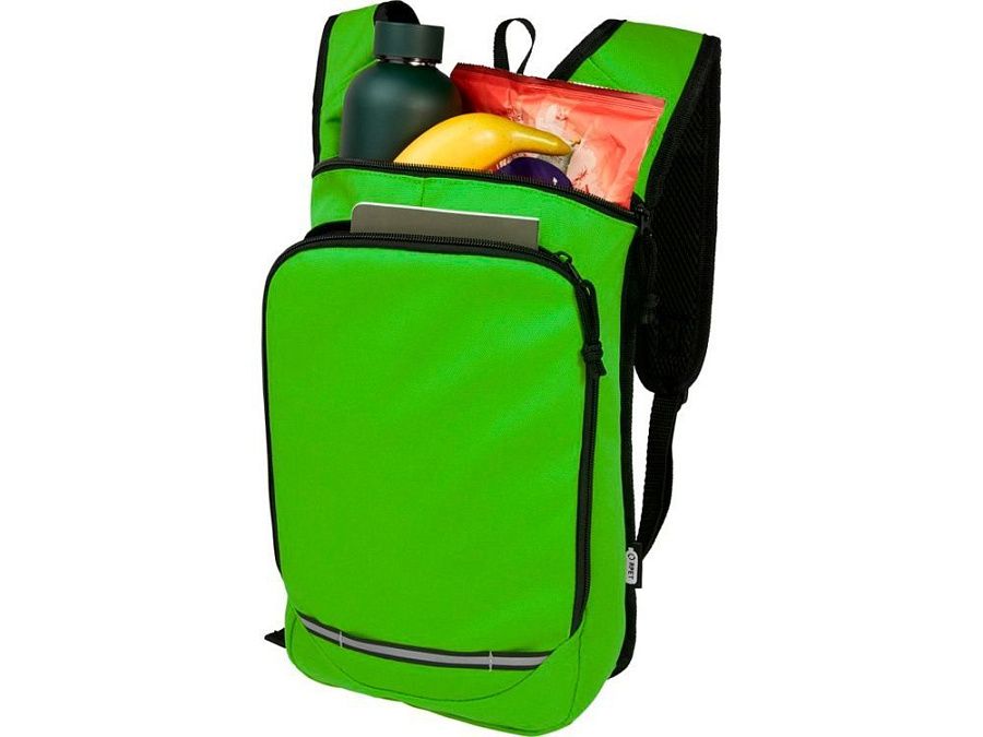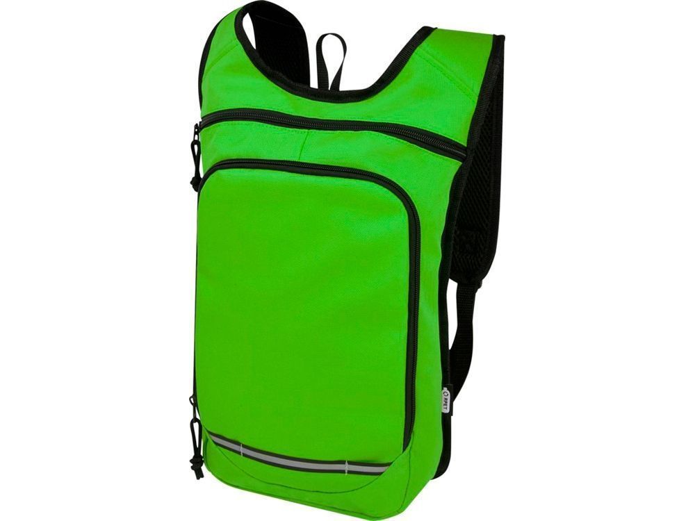 Рюкзак Trails изготовлен из 100% переработанной по стандарту GRS водоотталкивающей ткани и имеет один передний карман на молнии и одно основное отделение на молнии, а также отделение для гидросистемы. Светоотражающие полосы для видимости и сетчатая задняя часть для комфорта при переноске делает его отличным экологичным выбором для активного отдыха.