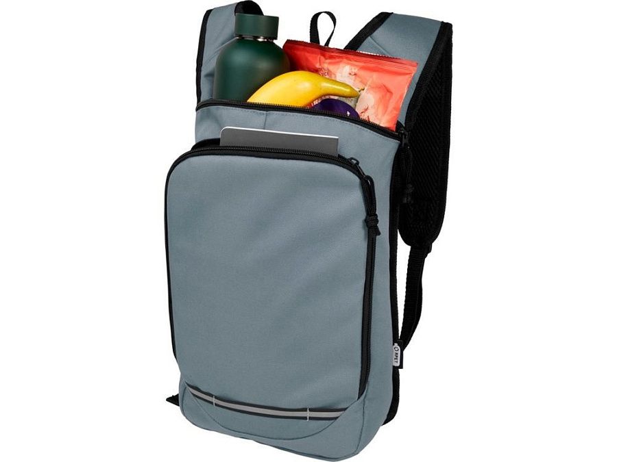 Рюкзак Trails изготовлен из 100% переработанной по стандарту GRS водоотталкивающей ткани и имеет один передний карман на молнии и одно основное отделение на молнии, а также отделение для гидросистемы. Светоотражающие полосы для видимости и сетчатая задняя часть для комфорта при переноске делает его отличным экологичным выбором для активного отдыха.