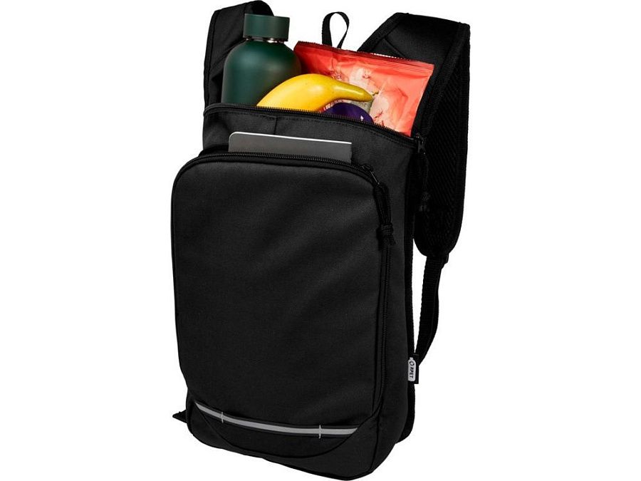 Рюкзак Trails изготовлен из 100% переработанной по стандарту GRS водоотталкивающей ткани и имеет один передний карман на молнии и одно основное отделение на молнии, а также отделение для гидросистемы. Светоотражающие полосы для видимости и сетчатая задняя часть для комфорта при переноске делает его отличным экологичным выбором для активного отдыха.