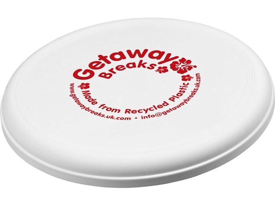 Фрисби, изготовленное из 100% переработанной пластмассы, сочетает в себе забавную идею для рекламы и экологичность. Сделано в Соединенном Королевстве. Отвечает стандарту EN72.
