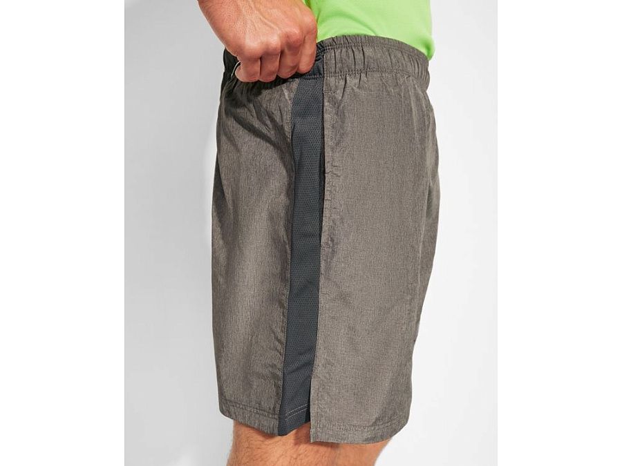 Спортивные шорты из двух видов полотен с подкладкой - трусами. Эластичный пояс с контрастным внутренним шнурком. Лампасы по бокам из дышащей ткани. Два карманы по бокам. Асимметричные боковые разрезы внизу.