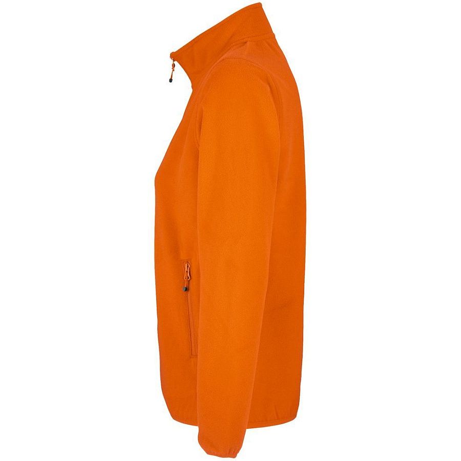 Флисовая женская куртка с воротником-стойкой. Застежка-молния в тон ткани, боковые карманы на молнии. Укрепляющая тесьма по вороту. Края рукава и низ изделия отделаны эластичной резинкой.