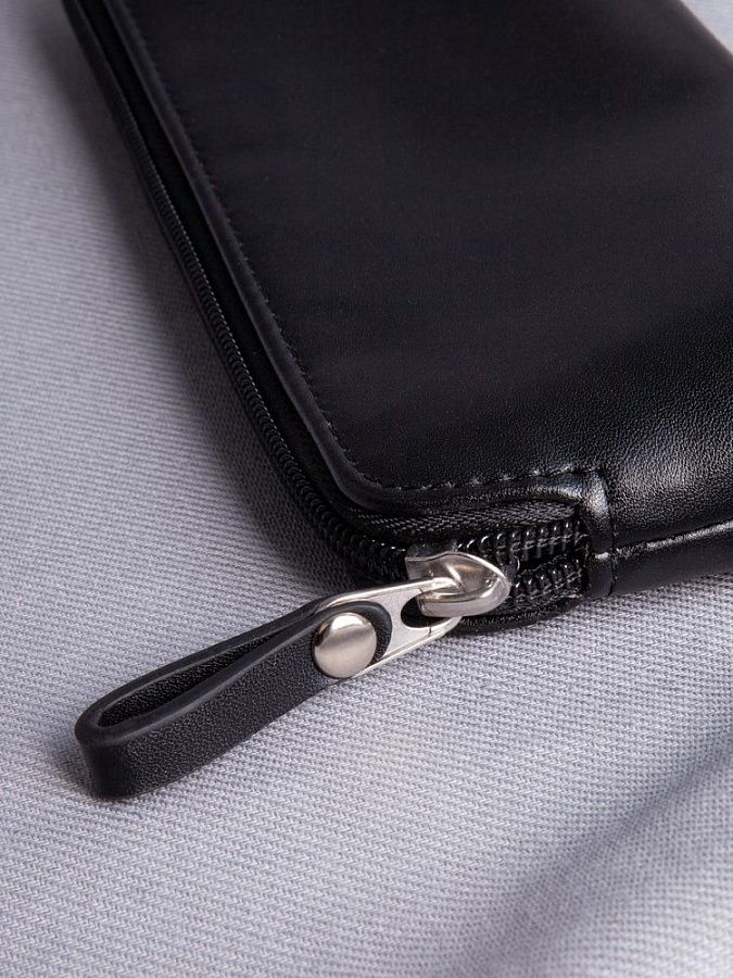 Изделие из рециклированной кожи, можно использовать как пенал для ручек или косметичку.