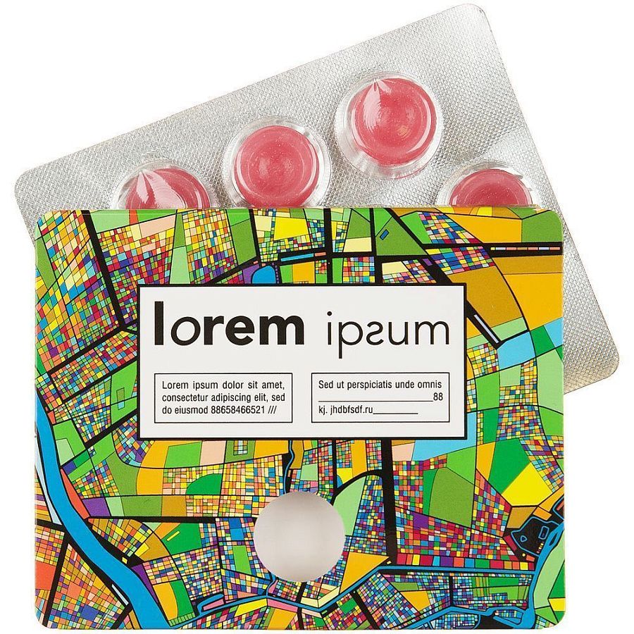 Маленький сувенир, который подарит яркое настроение, — набор из 10 леденцов в блистере, упакованный в шубер с вырубным окном.