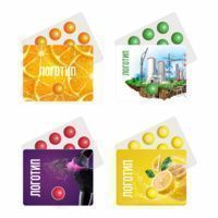 - Вариант вкуса: земляника, апельсин, зеленое яблоко, клубника, лимон, банан, абрикос, мята, сливочный, вишня, зеленый чай. Минимальный тираж для одного вкуса — 1000 штук.